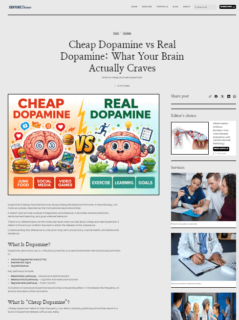 I provide evidence-based dental and medical content, including research-informed articles and patient education materials. I also create structured, SEO-optimized blogs and oral–systemic health content tailored to professional or general audiences.